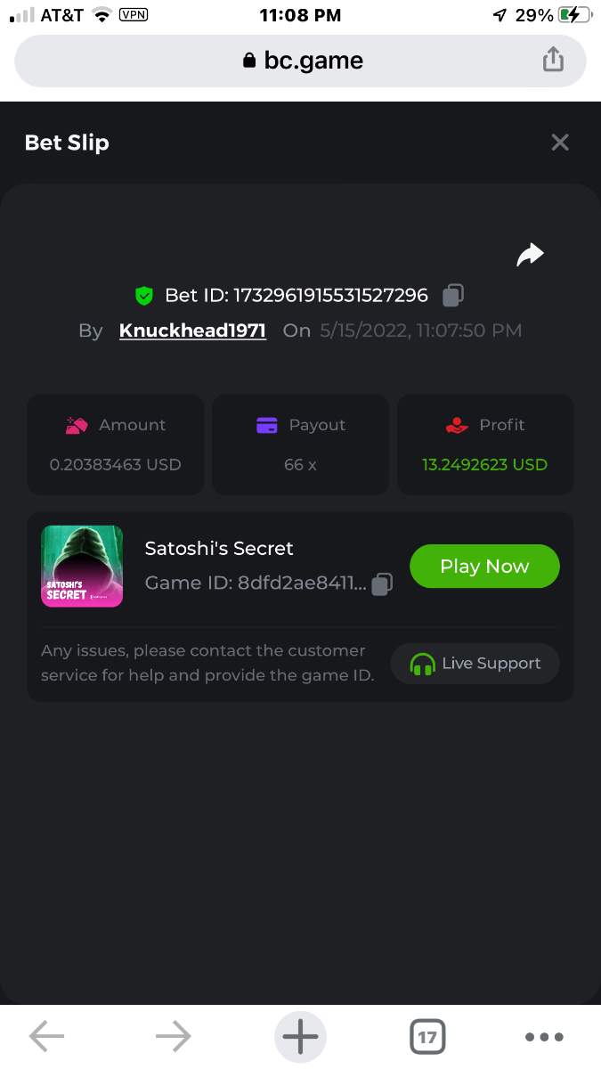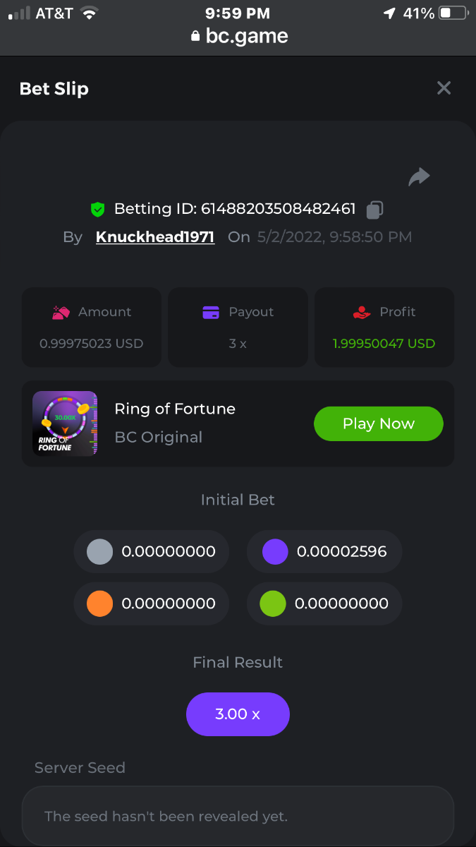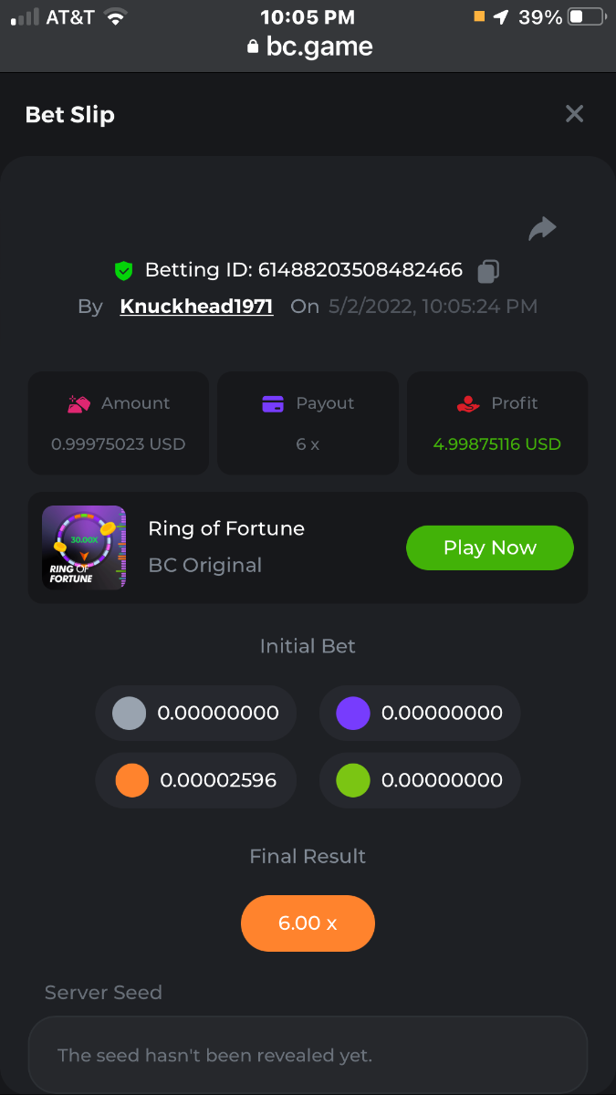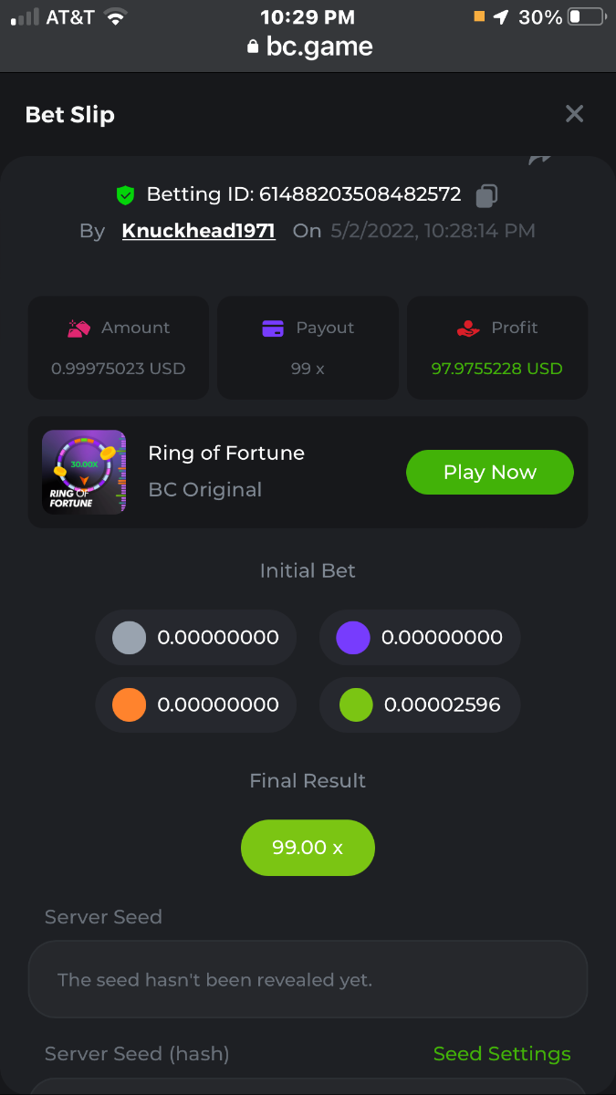 All wins are in order verified by time and date in succession grey first and green last bet was .00002596 BTC = $1.00 USD
