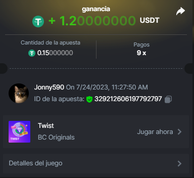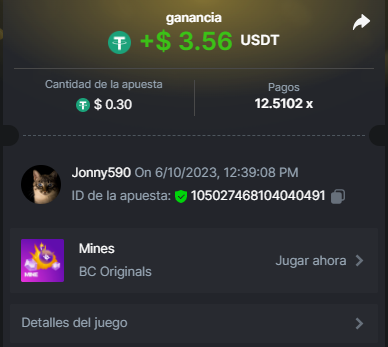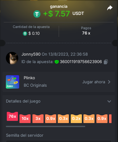 4. https://bc.game/#/sd/11INTM34DYRMDJ I bet 0.2 USDT, the page says it as 0.19