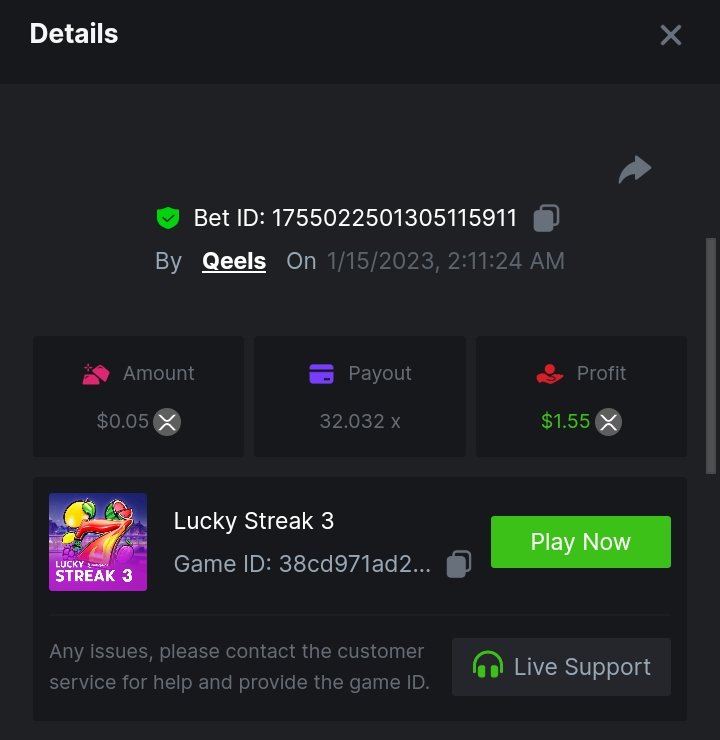MeninaDtrap Posted January 14, 2023 Share Posted January 14, 2023 Lucky streak 3. https://hash.game/#/sd/111D9M6QMW69LF 150.30x $0.20 bet Machine 40 https://hash.game/#/sd/111DA3ADU08WLV 50x $0.40 bet Safari https://hash.game/#/sd/111EHI8CKWTNV7 611.92x $0.50 bet twerk https://hash.game/#/sd/111GK0MCCOOB9V 95.59x $0.20 bet chance machine 20 https://hash.game/#/sd/111IZXZUUSAAZ7 42.01x $0.40 bet Link to comment Share on other sites More sharing options...