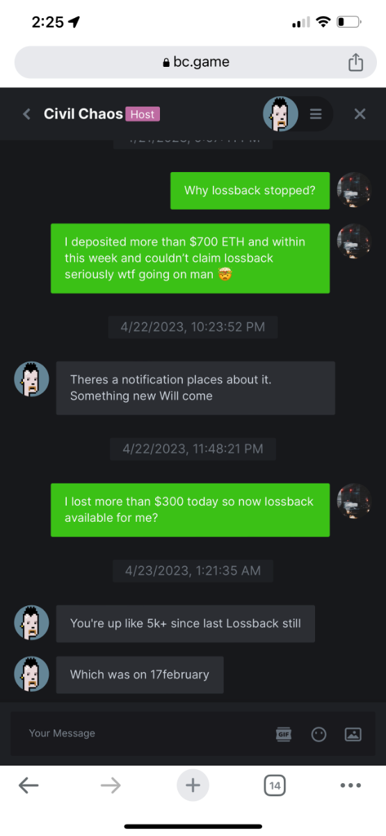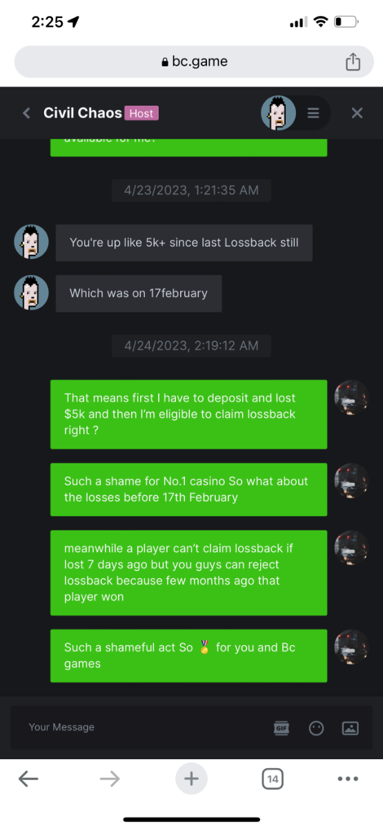 such a shame, for bc.games. I add screenshots of conversation with my host.