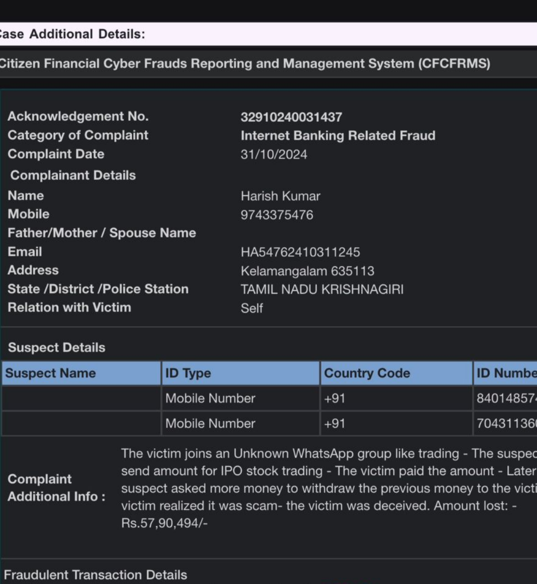 BCF_K_MANAGEMENTSCAM Posted January 1 Share Posted January 1 Case 1Order Details:Withdraw Amount: 25000 INROrder ID: F-1847607437977800173Status(f4): SuccessFee: 0 INRCreated Time: 1/11/2025, 10:19:20 pmCase 2Order Details:Withdraw Amount: 10000 INROrder ID: F-1847607632385834428Case 3 Order Details:Withdraw Amount: 50000 INROrder ID: F-1847141698153024199 UTR :530071143441 UTR: 530795694002 UTR: 530795688816 THe merchant is involved in fruad activities the money was ilegal i withdraw bank account is frozen due to these amount now it needs legal proceedings bcgame is telling me on we can't help you as i was complaint with in 30 days they didn't take action now if ask them check they replied that is more one month old that is not excuse that is scaming openly near about 10 deposit forfited or sacmed 15 withdrawal forfited that is not fairness Link to comment Share on other sites More sharing options...