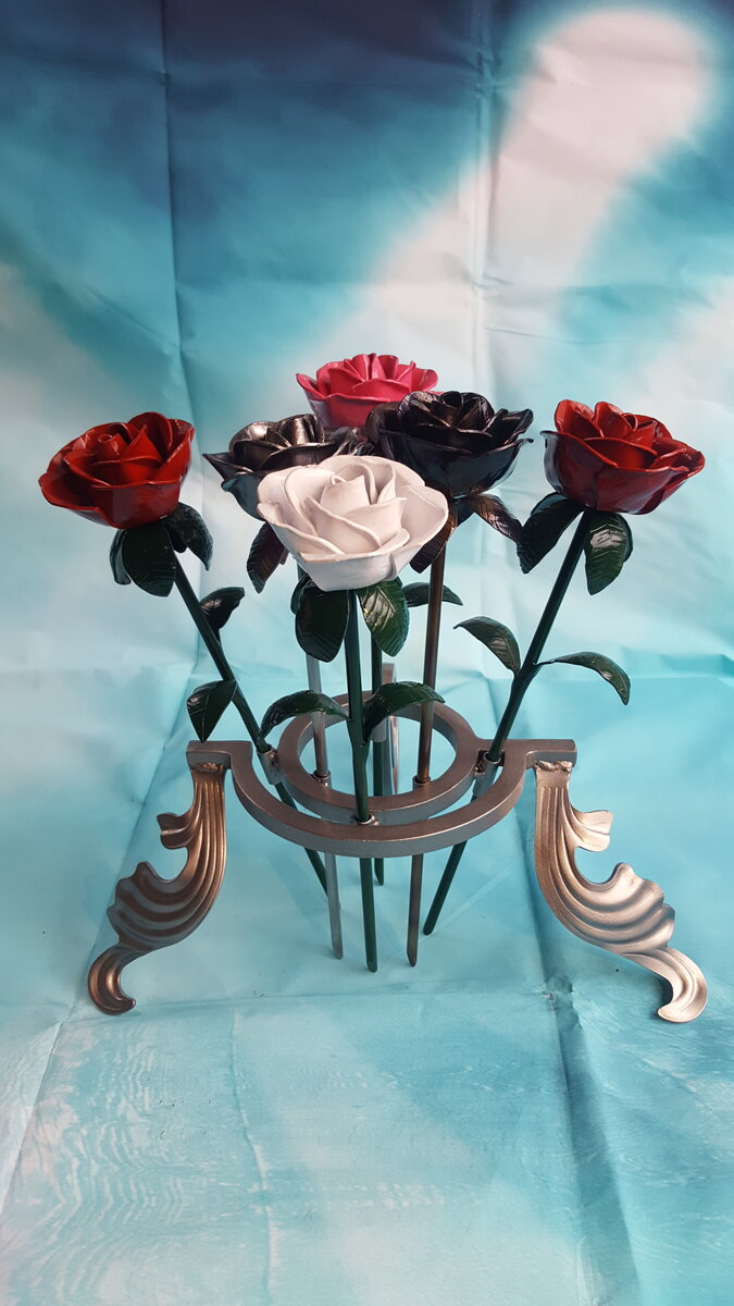 These are Hand Forged Roses.  I make them from 16 gauge steel, Can come in a variety of colors or polished steel.  Normally  $129,  But for anyone willing to get one, they are $100 + shipping