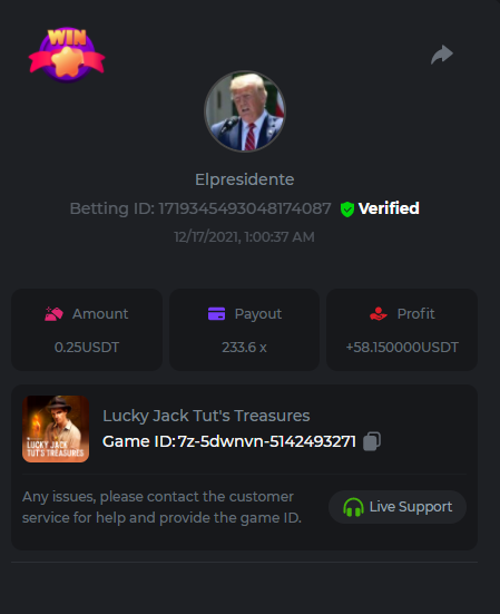 Lucky Jack                ID de la apuesta: 1719189821629599239