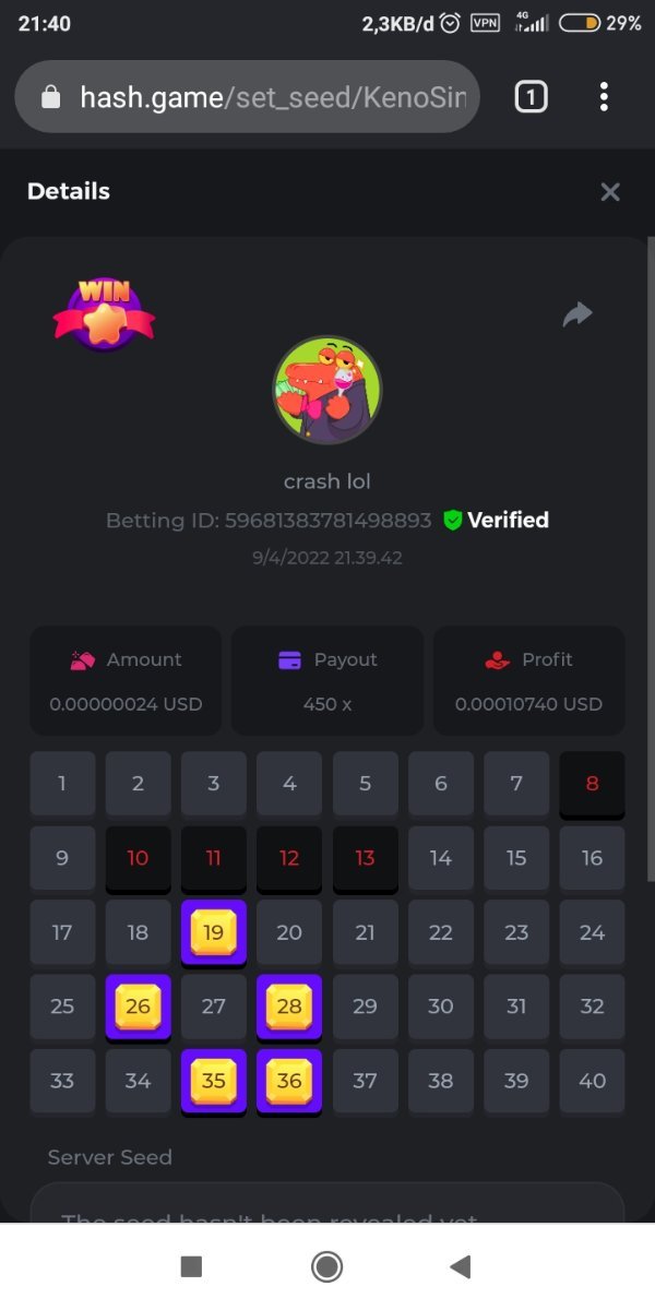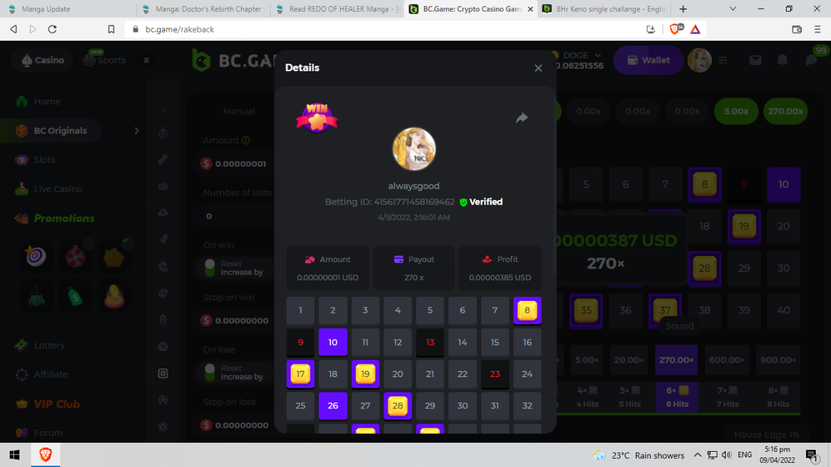 8Hr Keno single challange