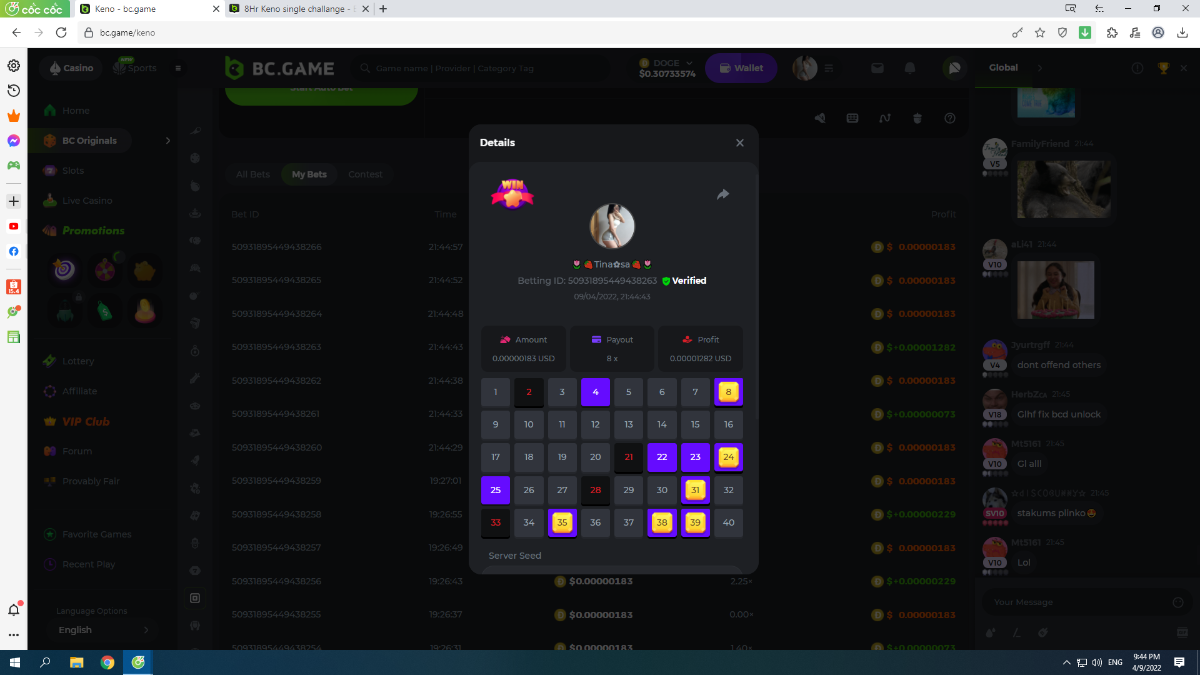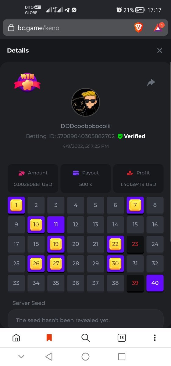 Today we have a Keno single challenge going on